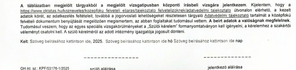 Az utolsó részt (kelt) mindenkinek ki kell tölteni, és a szülőnek és a tanulónak is alá kell írnia.