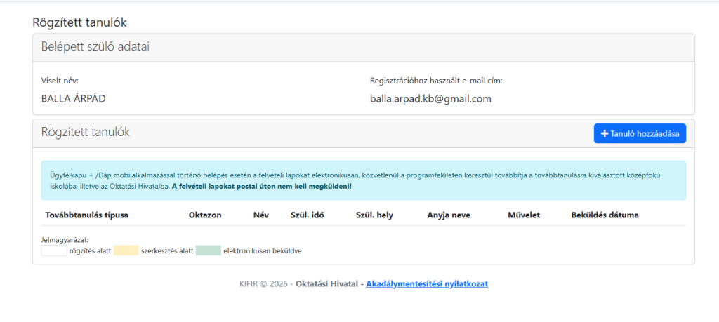 Ha már sikerült eljutni a tanuló regisztrációjáig ….
